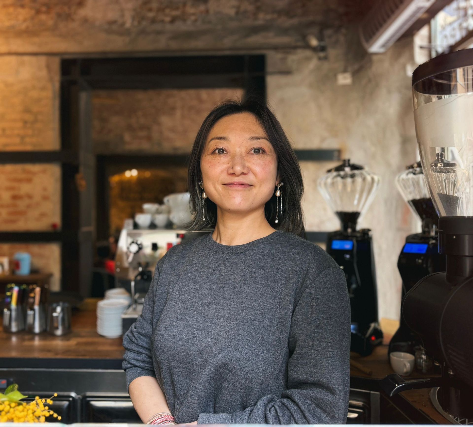 Nata a Kobe in Giappone, si laurea in Sociologia presso la Hitotsubashi University di Tokyo. Spinta dalla passione per il textile design si trasferisce prima a Londra per approfondire gli studi nel settore, per poi stabilirsi a Firenze, dove lavora per oltre vent’anni nel mondo della moda. Da più di tre anni fa parte del team di Simbiosi Café, dove scopre una nuova passione: il mondo degli specialty coffee e della latte art, approfondito anche attraverso diversi corsi di formazione nel settore della caffetteria. Con la sensibilità maturata nel design tessile porta nel caffè uno sguardo creativo e attento al dettaglio, trasformando ogni tazza in un piccolo gesto artistico