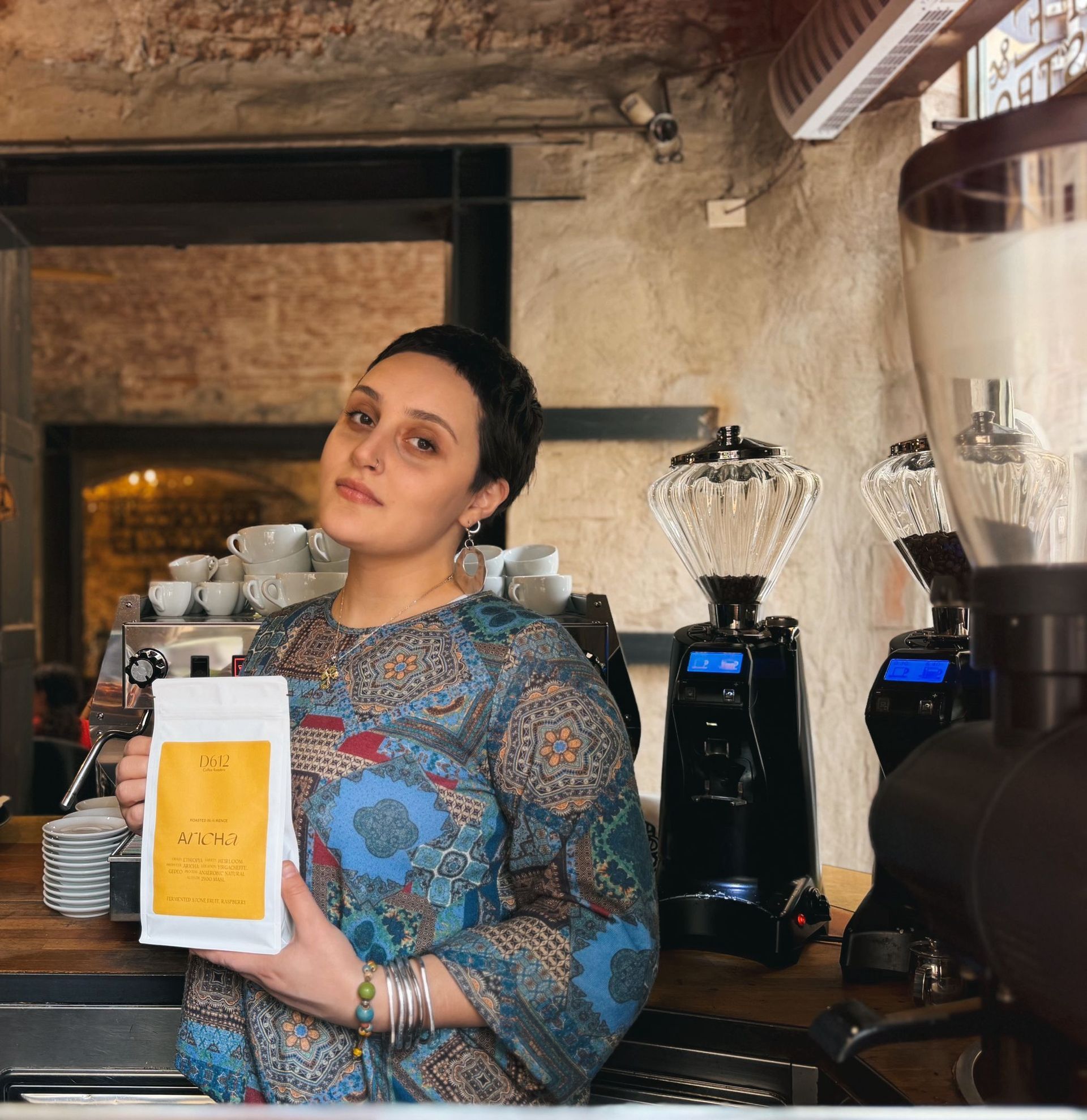 Georgiana (1997), è macchinista di Simbiosi Café. Dopo aver intrapreso studi in Medicina e Arte presso l’Accademia Statale di Belle Arti di Tbilisi, completa la sua formazione anche nel campo del Graphic Design presso l’Academy of Digital Industries. Da oltre sei anni approfondisce con passione la cultura del caffè, dedicandosi allo studio degli specialty coffee e perfezionando la tecnica della latte art. A Simbiosi porta sensibilità estetica, precisione tecnica e attenzione al dettaglio, contribuendo a rendere il momento del caffè un’esperienza curata e contemporanea.